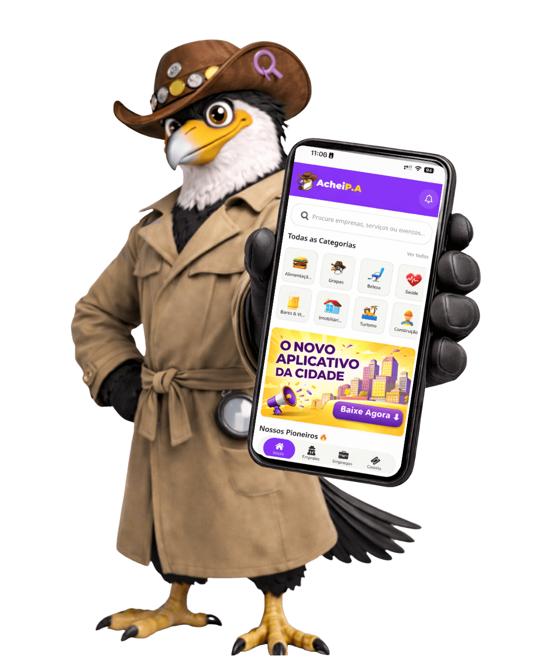 Ele é a tradução da nossa essência: atento às necessidades da cidade, rápido para resolver problemas e sempre de olho no que há de melhor por aqui. O Afonsinho não voa só pelos céus da nossa região; ele voa pelo digital, conectando você ao que você precisa num bater de asas.